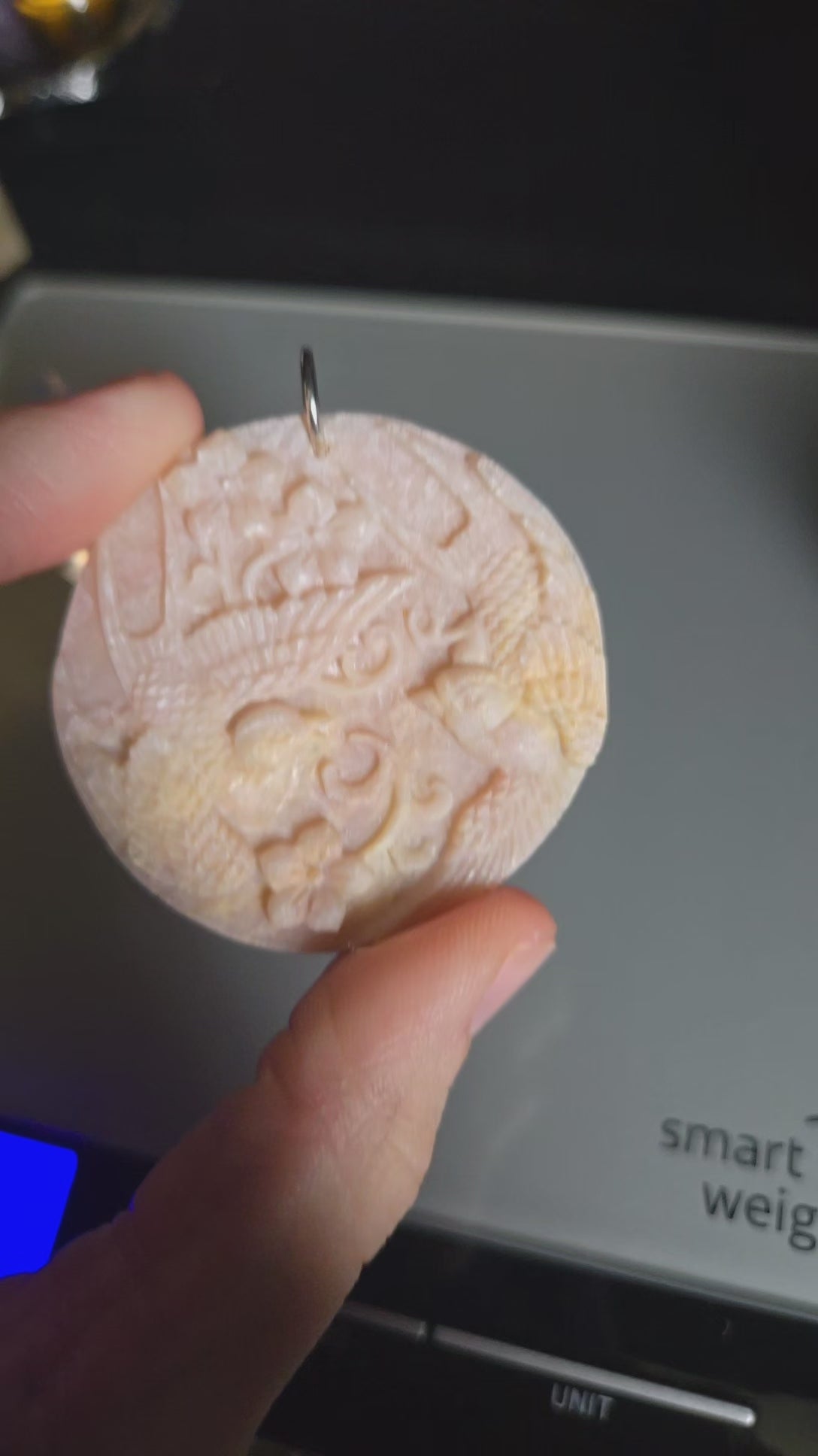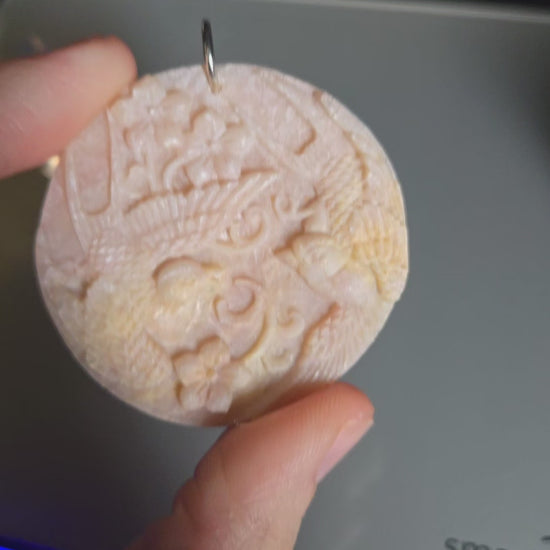 Pink Opal Pendant w/ bird carving